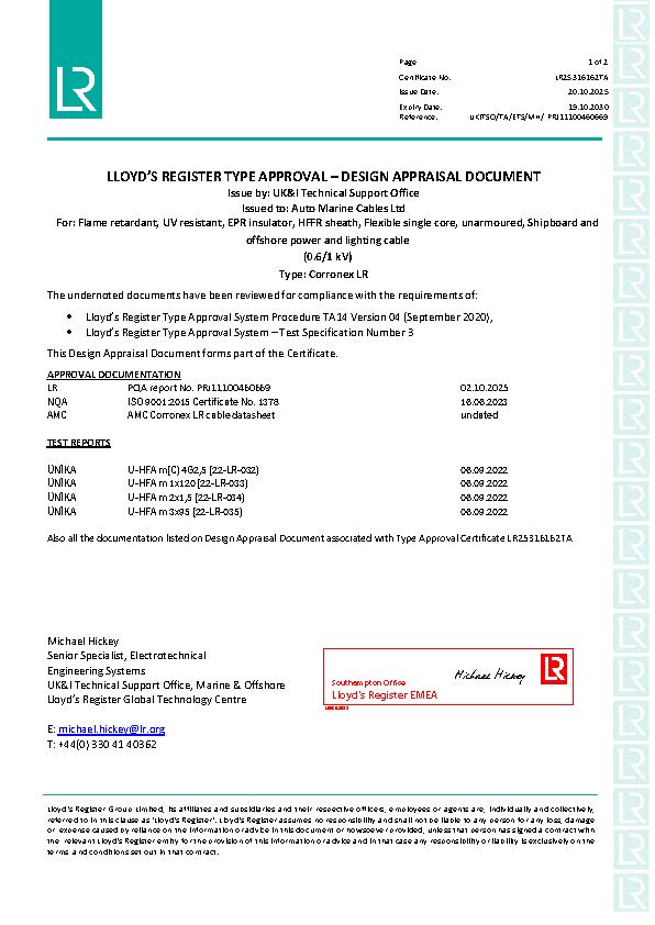 Corronex: Lloyd’s Register Type Approval – Design Appraisal Document